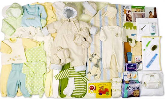 El contenido completo para los años 2012/2013 puede verse en la web del Kela (Seguridad Social de Finlandia). El diseño y las prendas pueden cambiar de un año a otro, pero como son unisex pueden ser heredados por futuros hermanos/as. Así, con el segundo hijo cabe la posibilidad de reutilizar el kit y recibir la ayuda económica o bien recibir otro pack sin ningún compromiso.