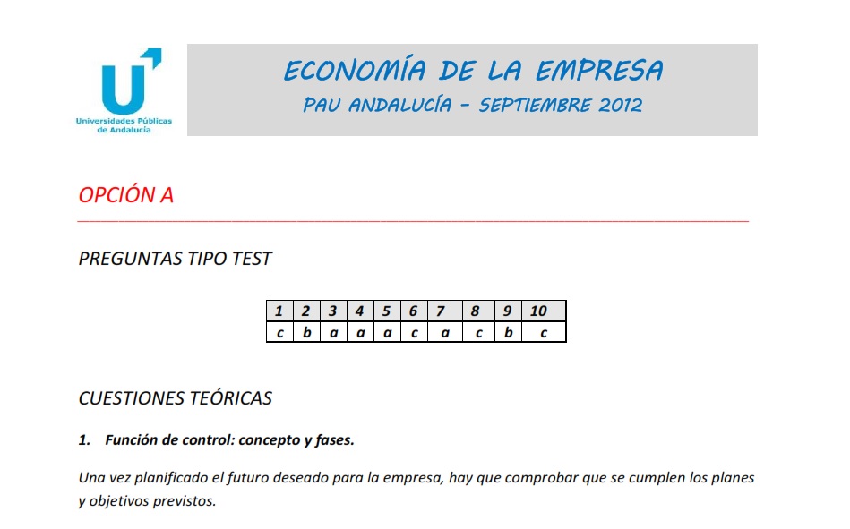 Solucionario PAU Andalucía Economía Septiembre 2012