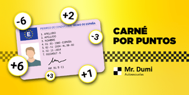 Un conductor novel empieza teniendo 8 puntos, sino se comete ninguna infracción durante los 3 años siguientes se le dan 2 p. más (incentivo positivo), pero si comete infracciones se le quitan puntos (incentivo negativo): 6 p. por conducir drogado, 4 p. por un adelantamiento peligroso, 2 p. por no llevar silla en el coche para niños,…