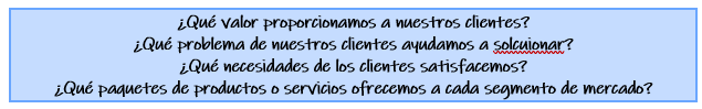En este módulo se describe el conjunto de producto y servicios que crean valor para el segmento de mercado específico.