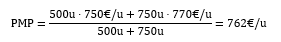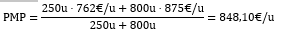 Compramos 800 unidades a un precio de 875 €/u, con lo que tendremos que calcular un nuevo precio medio ponderado:
