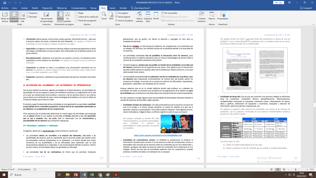 El contenido de la programación se corresponde con lo recogido en el siguiente índice: