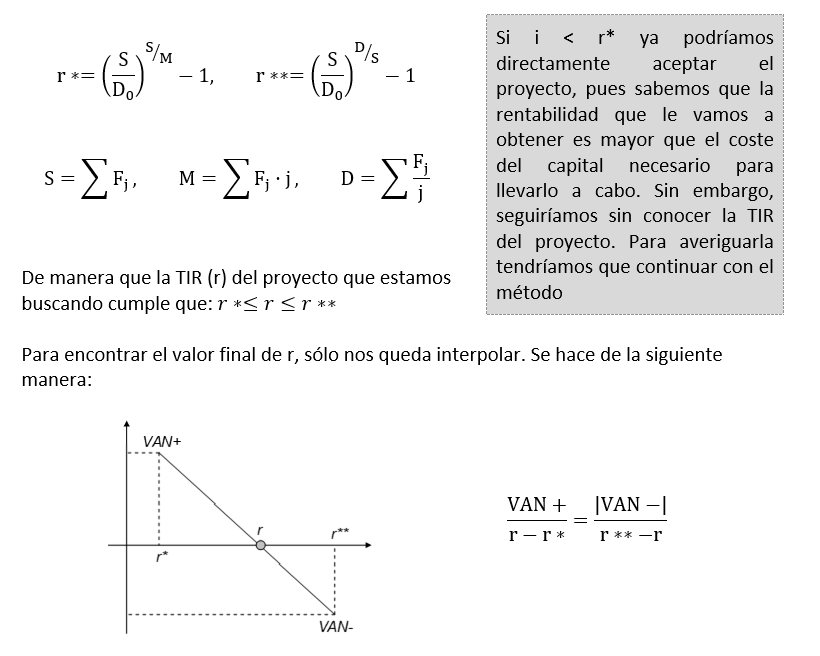 Por esta razón, para aceptar o rechazar un proyecto de inversión, el criterio compara la TIR (r) del proyecto con el coste de financiación del capital, de manera que: