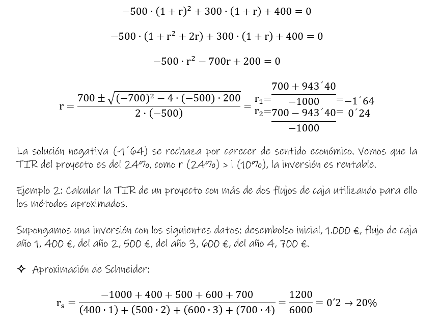 Si hubiera que elegir entre varios proyectos de inversión, de entre todos para los que r > i, se escogerá aquel que tenga un valor de r superior.