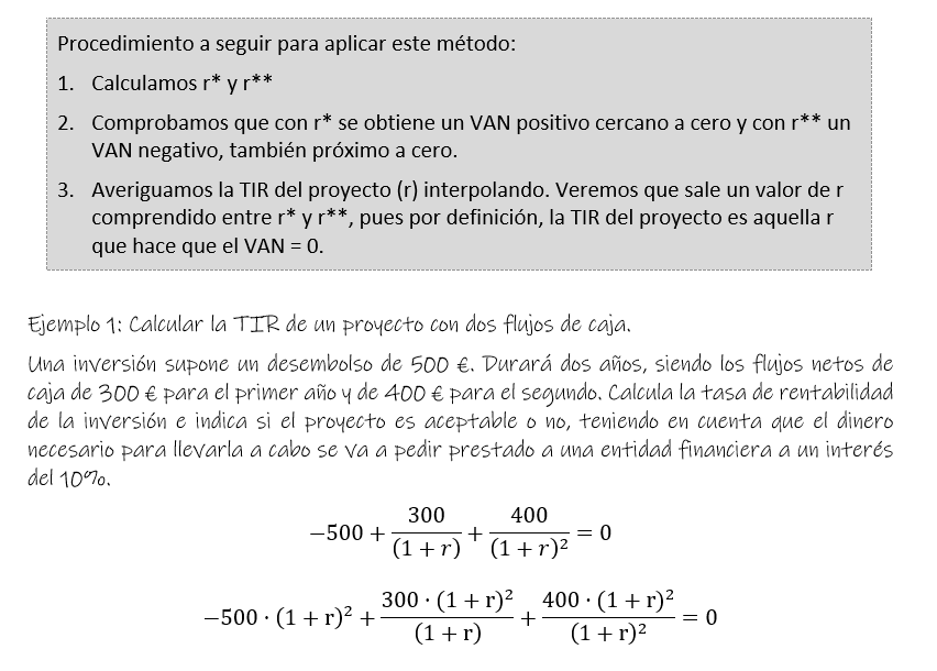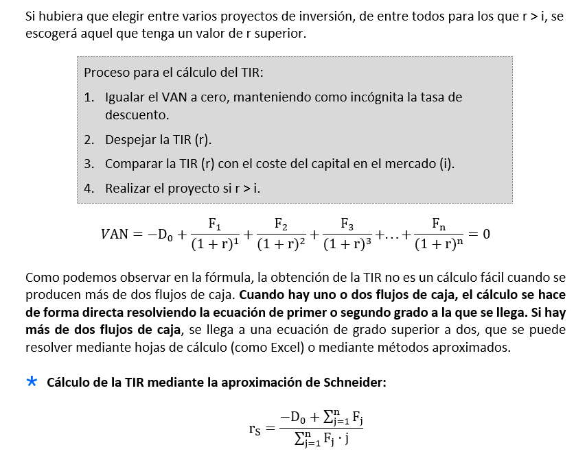 Por esta razón, para aceptar o rechazar un proyecto de inversión, el criterio compara la TIR (r) del proyecto con el coste de financiación del capital, de manera que: