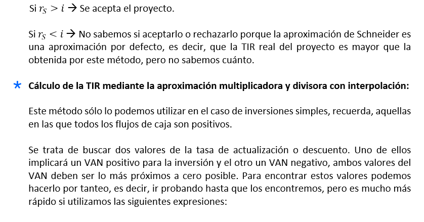 Si hubiera que elegir entre varios proyectos de inversión, de entre todos para los que r > i, se escogerá aquel que tenga un valor de r superior.