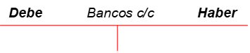 Como la actividad económica diaria de la empresa va cambiando el valor de su patrimonio, hemos de utilizar un instrumento que nos sirva para representar esos cambios en cada uno de los elementos patrimoniales. Este instrumento se llama “cuenta”, y se representa como una T, en la que la línea vertical separa dos partes, la parte de la izquierda se llama “debe” y la derecha “haber”. Por ejemplo, la cuenta bancos (que hace referencia al dinero que tiene la empresa ingresado en la cuenta corriente) se representa así:
