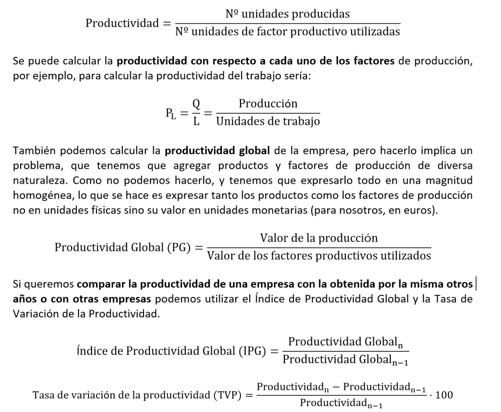 Por productividad se entiende la relación entre la cantidad de bienes y servicios producidos y los factores empleados en su producción.