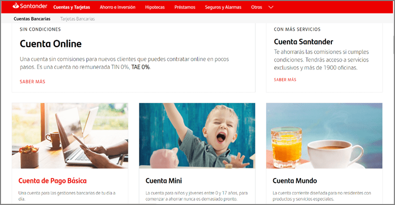 Fuente: ejemplo cuentas del Banco Santander a octubre de 2023.