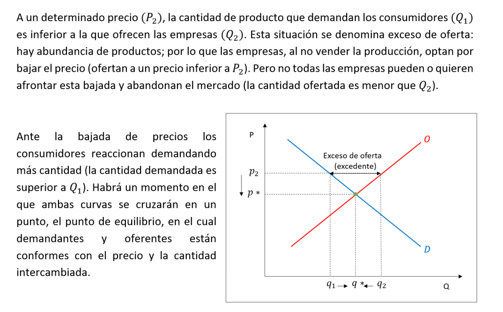 ¿Qué pasa si el precio sube por encima del equilibrio? El exceso de oferta