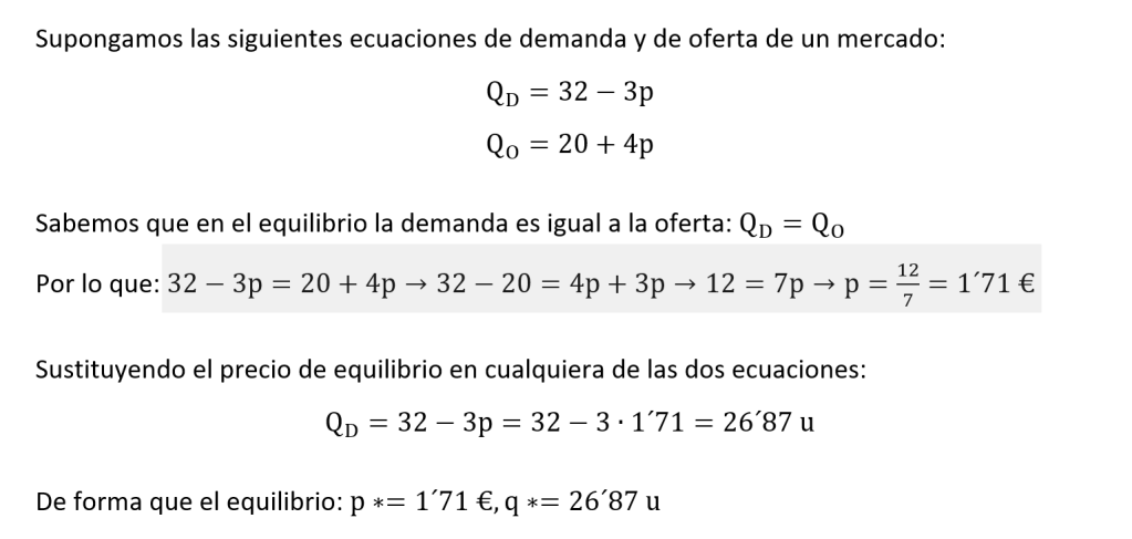 Está claro que los consumidores querrán adquirir el producto que desean al precio más bajo posible y, los empresarios, venderlo lo más caro que puedan. Existe, sin embargo, un punto de equilibrio donde ambas partes se ponen de acuerdo para intercambiarse una cantidad determinada de bienes a un precio determinado y que convence a todos.