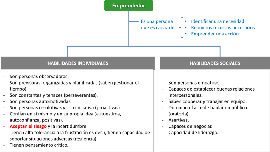 La lista de habilidades deseables en un emprendedor puede ser interminable. Dentro de ellas, las más destacables son las que vienen recogidas a continuación y, de todas ellas, la más importante es la capacidad de asumir riesgos.