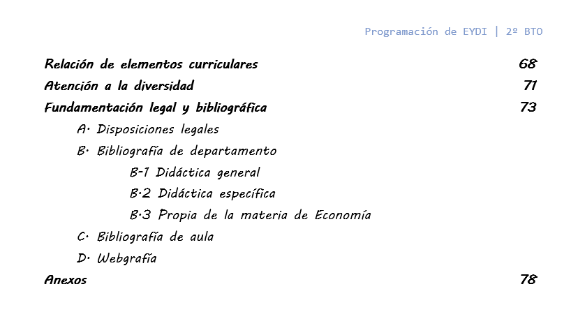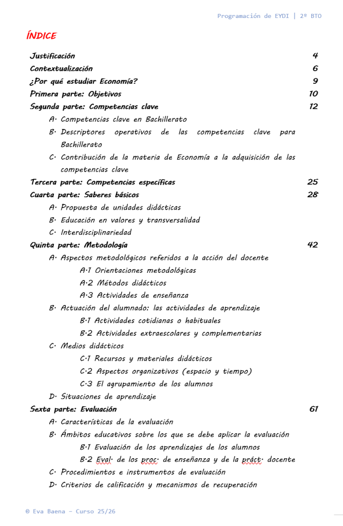 El contenido de la programación se corresponde con lo recogido en el siguiente índice: