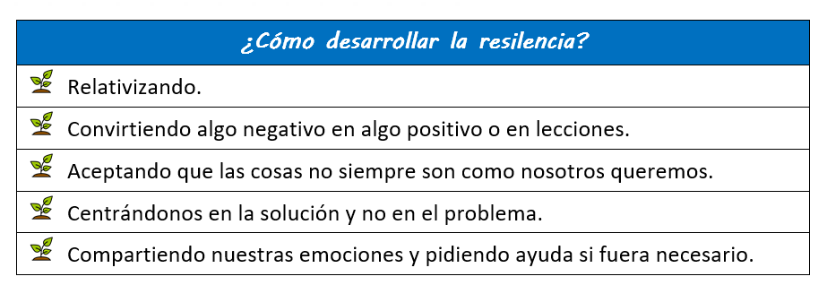 Todos pasamos por momentos difíciles: enfermedades, divorcio de nuestros padres, muerte de alguna persona querida, rupturas con parejas, suspensos, etc. La resilencia es la capacidad para superar la adversidad, pero no solo eso. También es la habilidad de soportar situaciones límite, de readaptarnos y transformar esas situaciones en desafíos de los que salir aún más reforzados que antes. La resiliencia define nuestra capacidad para volver a levantarnos y la determinación para perseguir los objetivos que nos proponemos.