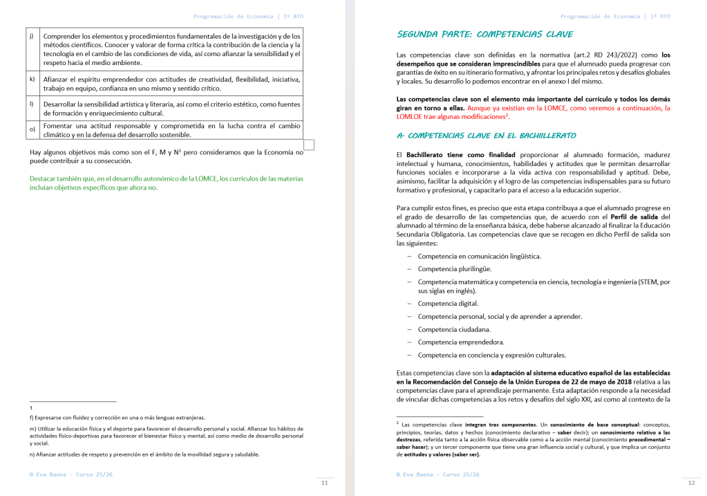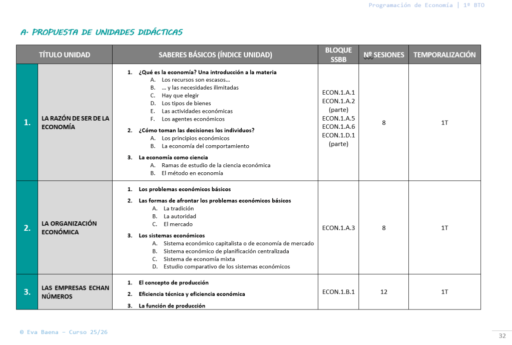 Programación de Economía 1º Bachillerato 25-26 LOMLOE