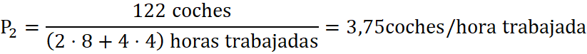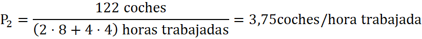Si al año siguiente se contrata otro trabajador más a media jornada, se logran 22 coches más.