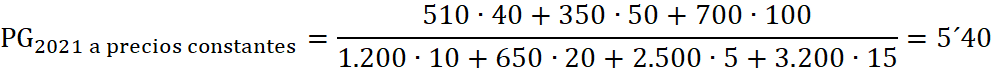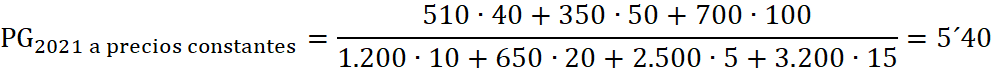 b) La productividad global obtenida por la empresa durante el año 2021, a precios constantes, utilizando como año base el año 2020 para evitar el efecto de la inflación sobre la misma.