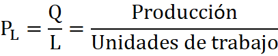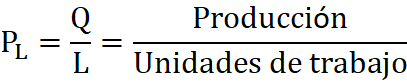 Se puede calcular la productividad con respecto a cada uno de los factores de producción, por ejemplo, para calcular la productividad del trabajo sería: