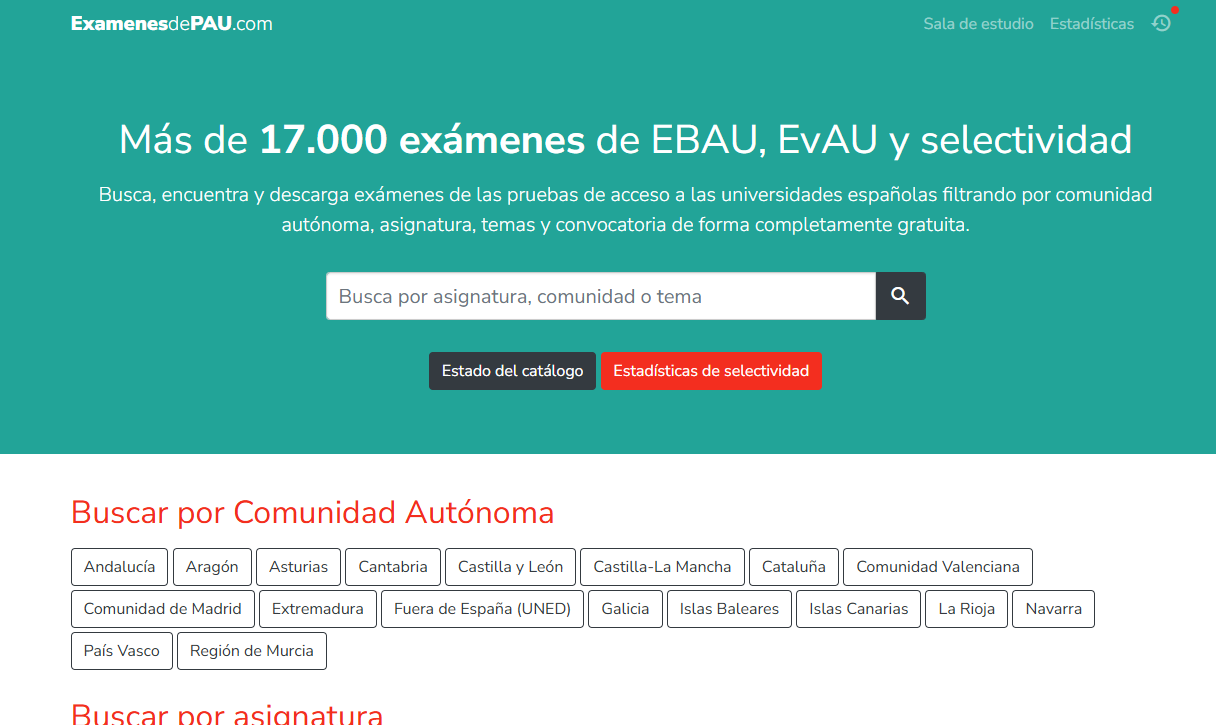 EXÁMENES DE PAU DE TODAS LAS MATERIAS Y TODAS LAS COMUNIDADES