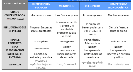 Dependiendo de las características y condiciones del mercado, las empresas pueden tener capacidad influir en el precio. Esto nos lleva a dos grandes tipos de mercados. A, COMPETENCIA PERFECTA La competencia perfecta es un tipo de mercado teórico que se basa en los siguientes supuestos: hay un gran número de oferentes (y de demandantes), las … Seguir leyendo